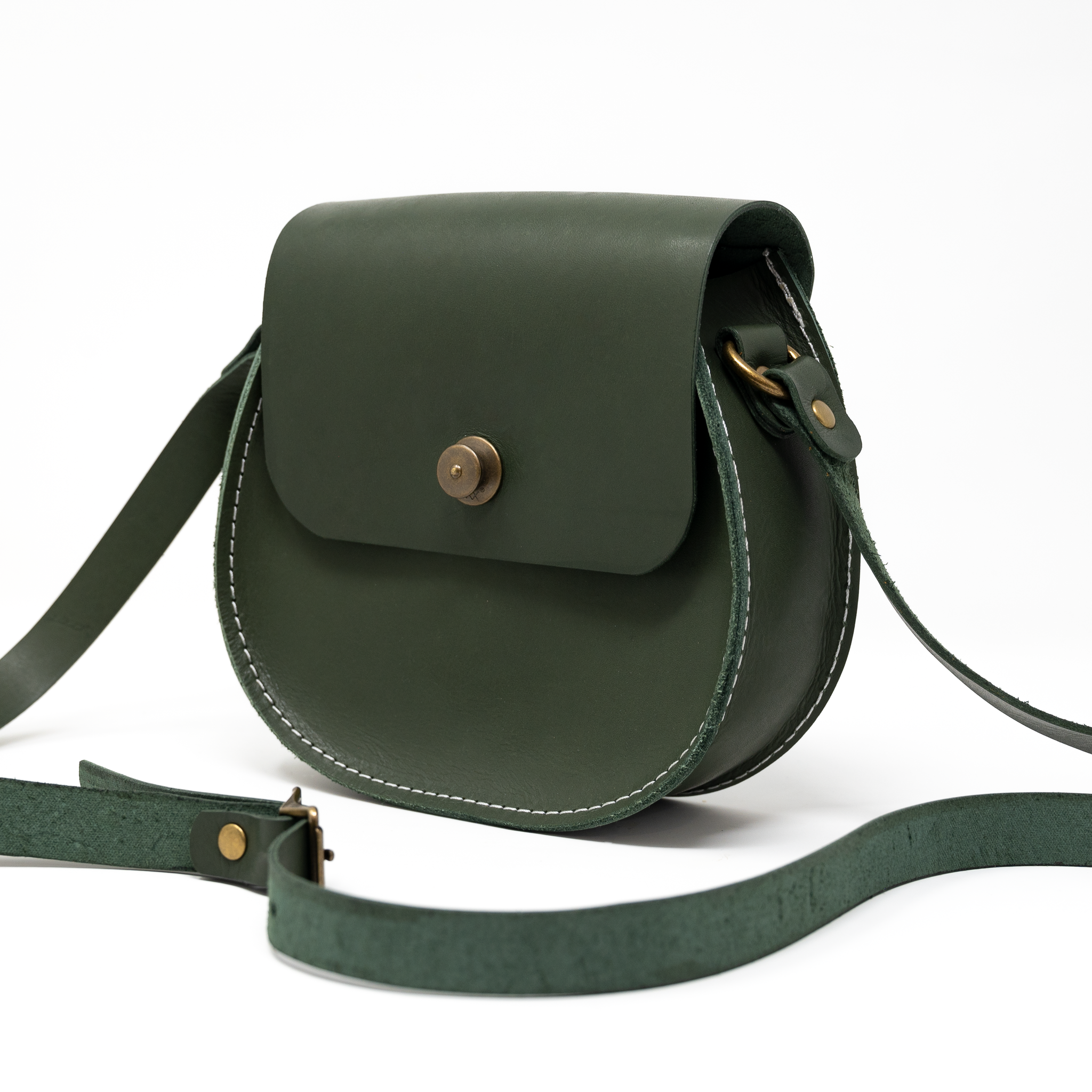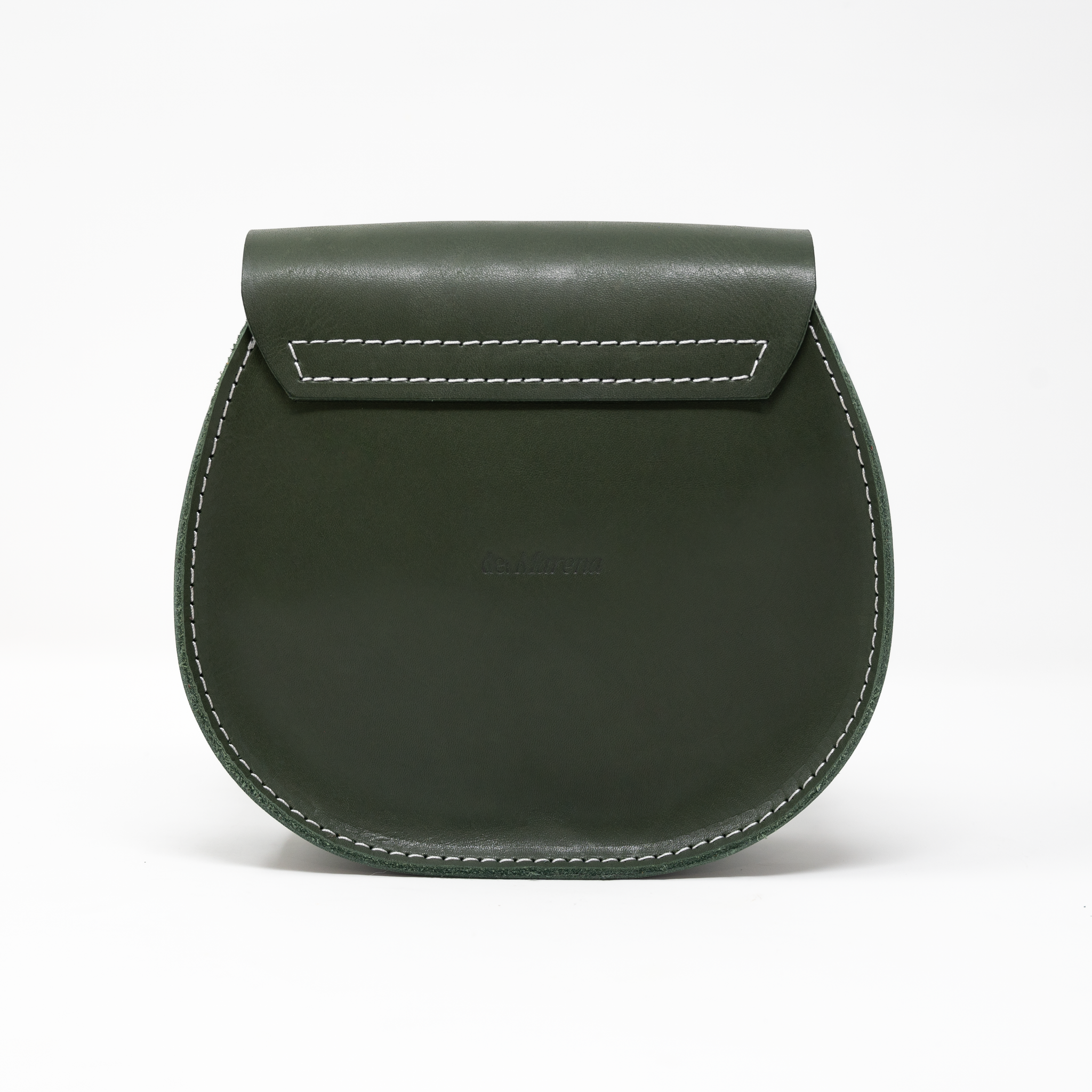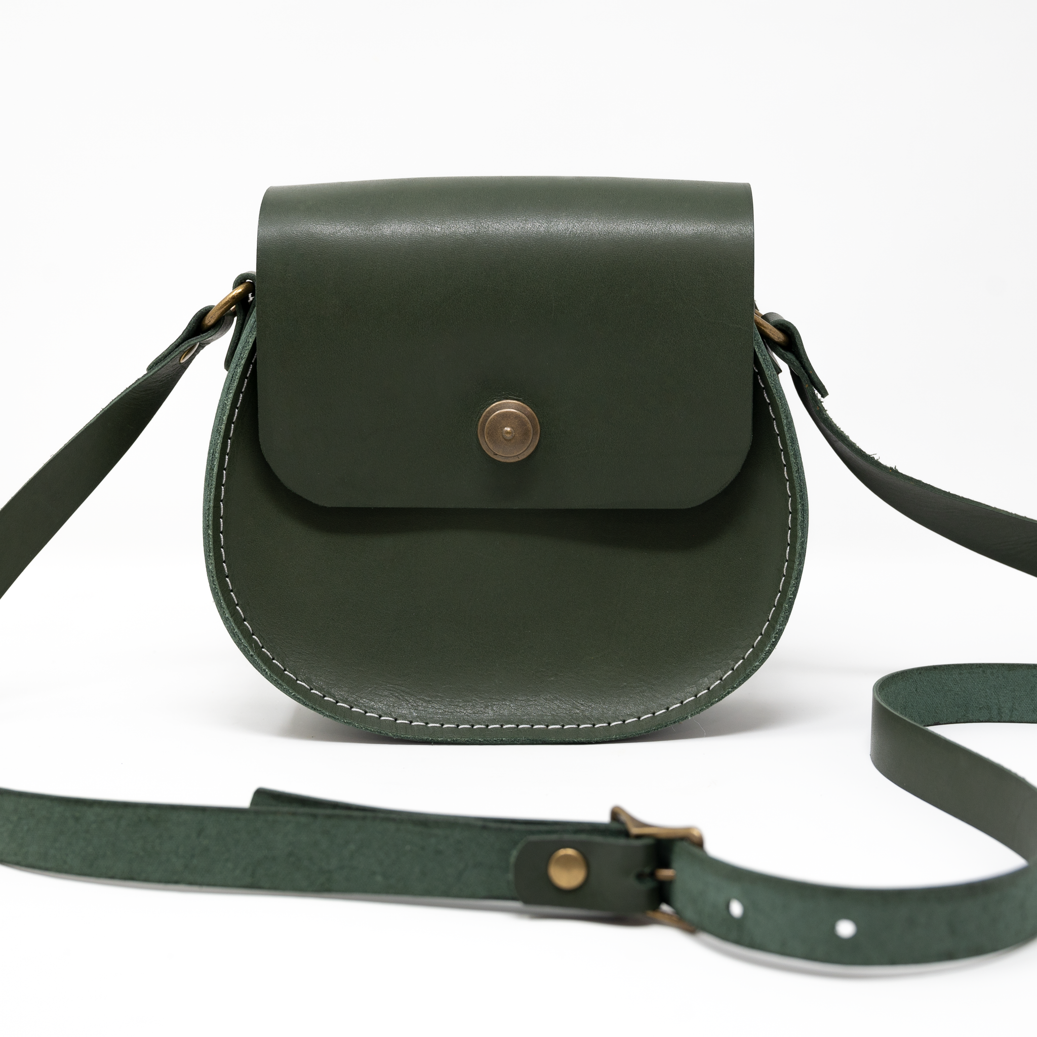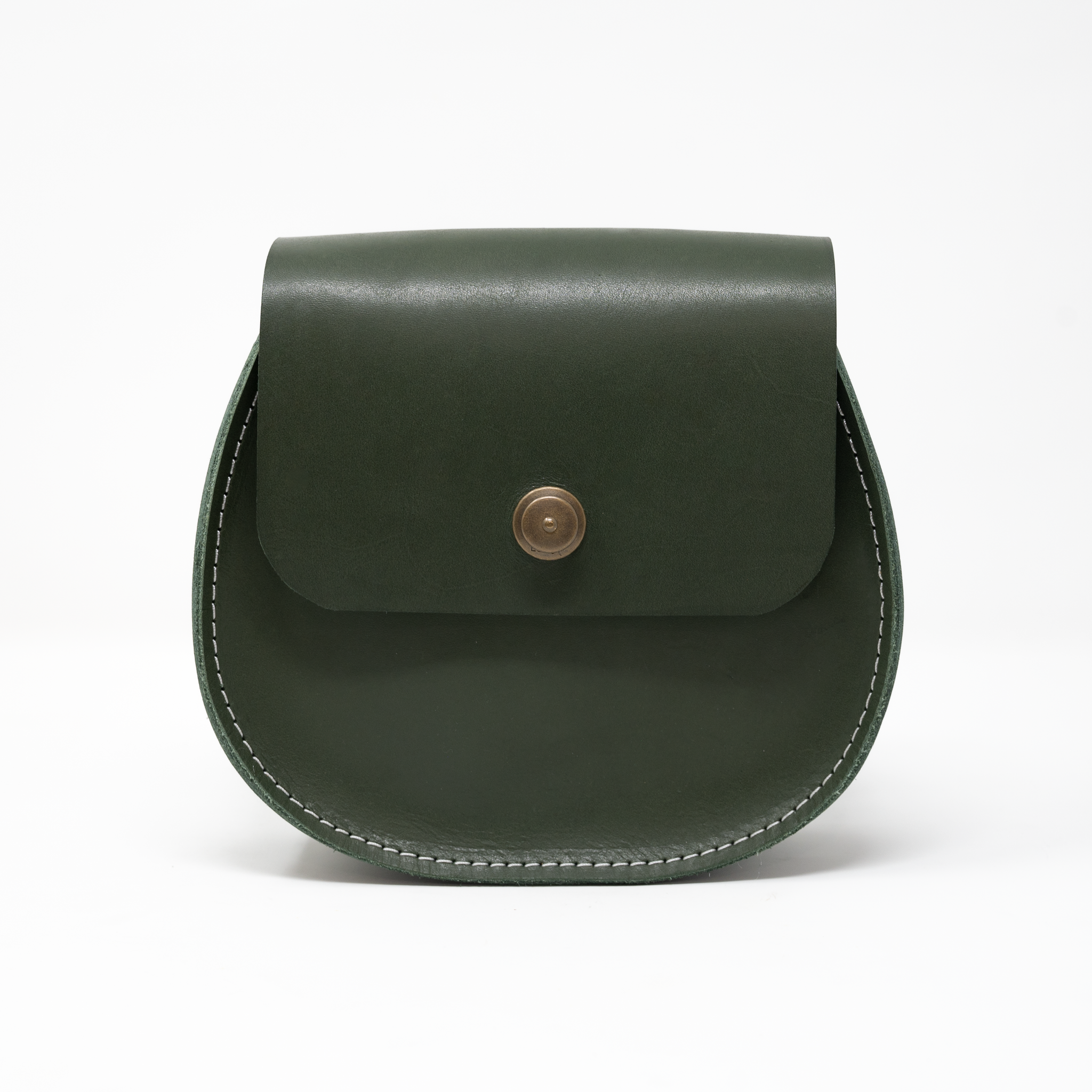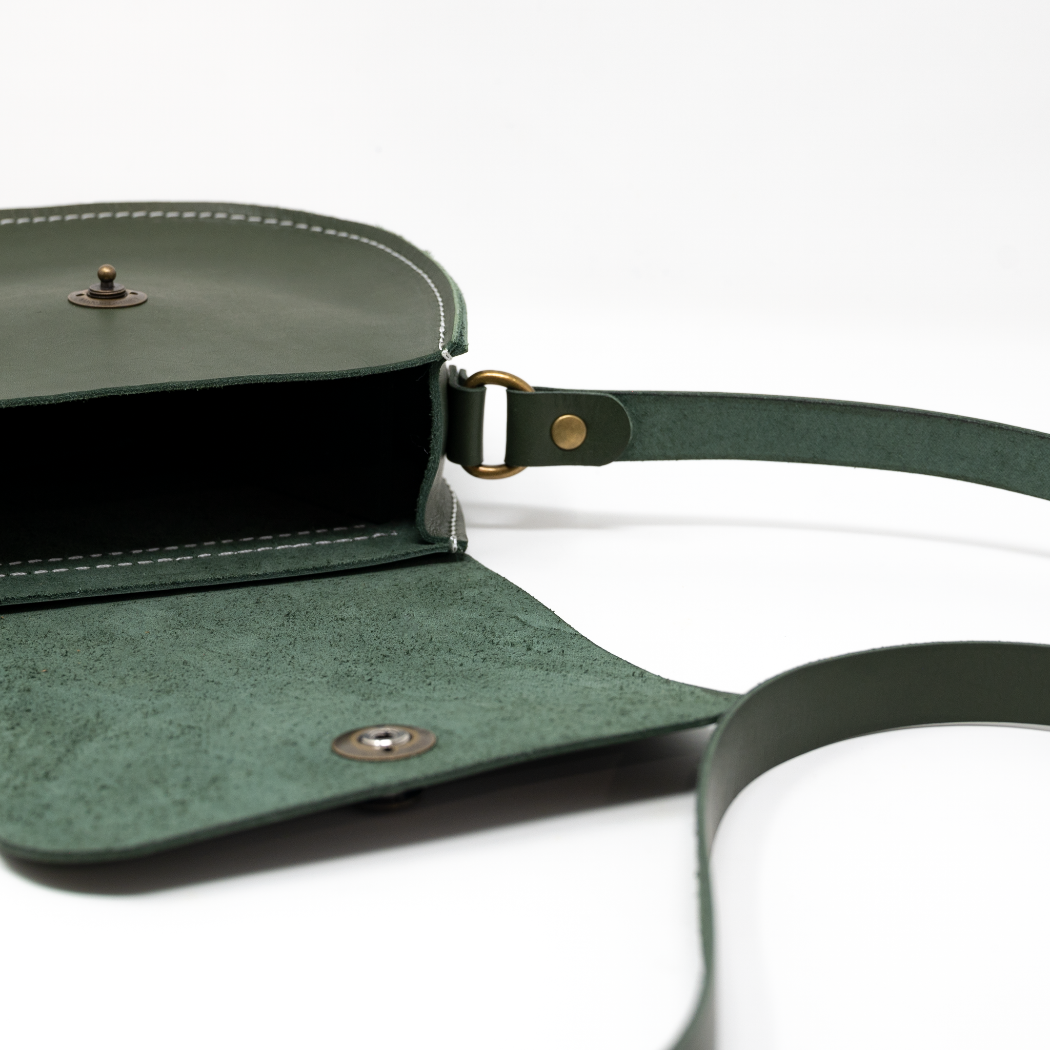 Handmade out of Italian flat grain cowhide leather & antique brass German hardware, finished with a white stitch.